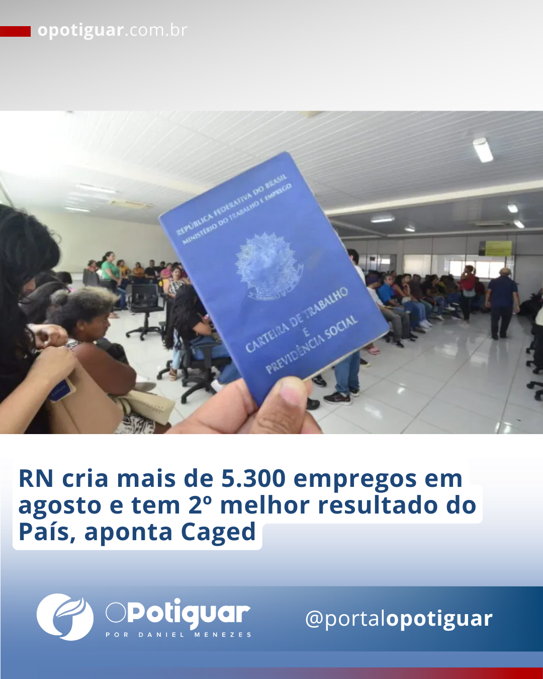 O Rio Grande do Norte encerrou o mês de agosto de 2025 com saldo positivo de 5.339 empregos com carteira assinada, segundo dados divulgados nesta segunda-feira 29 pelo Novo Caged (Cadastro Geral de Empregados e Desempregados), do Ministério do Trabalho e Emprego.