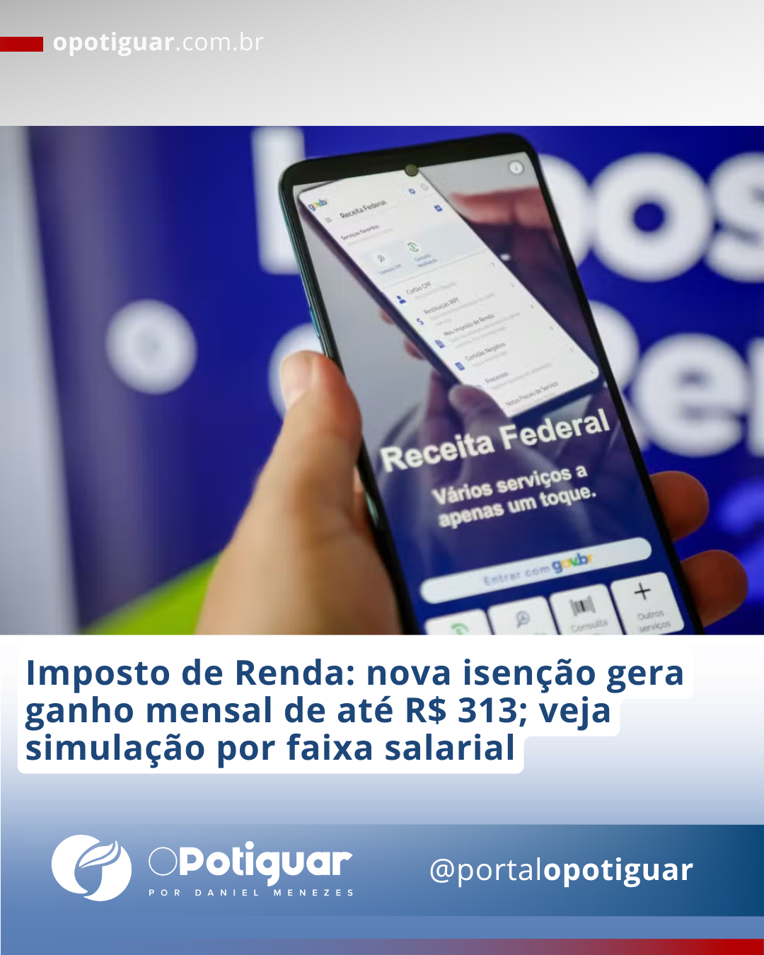 - 🔎 Hoje, estão isentos do Imposto de Renda os contribuintes com renda tributável de até R$ 3.036 por mês — equivalente a dois salários mínimos. Com a proposta, essa faixa de isenção será ampliada para rendimentos de até R$ 5 mil mensais.