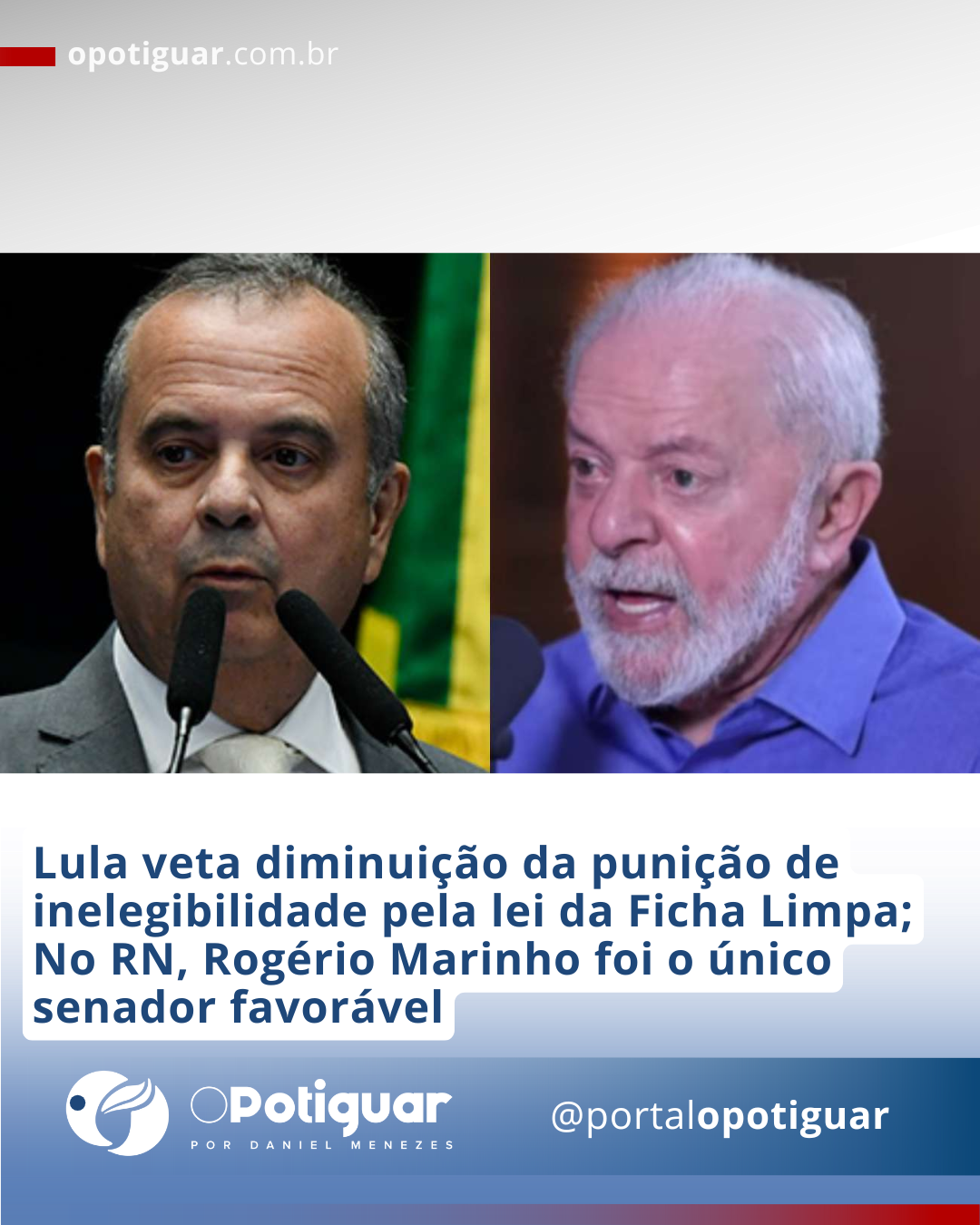 Lula veta diminuição da punição de inelegibilidade pela lei da Ficha Limpa; No RN, Rogério Marinho foi o único senador favorável