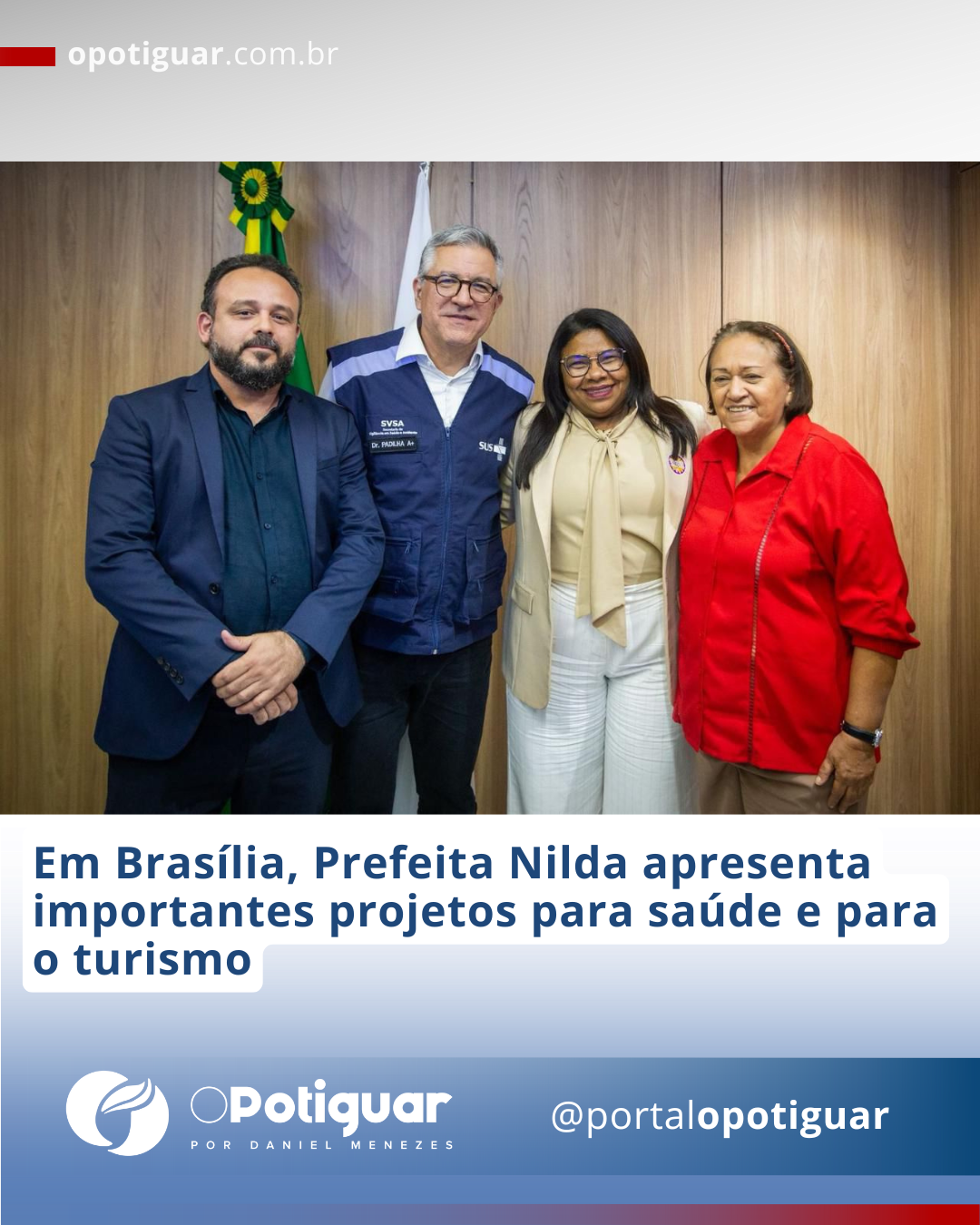 A prefeita de Parnamirim, Nilda, cumpriu nesta terça-feira (30) uma importante agenda em Brasília, participando de reuniões ministeriais para apresentar pleitos estratégicos em benefício da população. Os encontros tiveram como foco a melhoria da rede pública de saúde e o fortalecimento da infraestrutura turística da cidade.