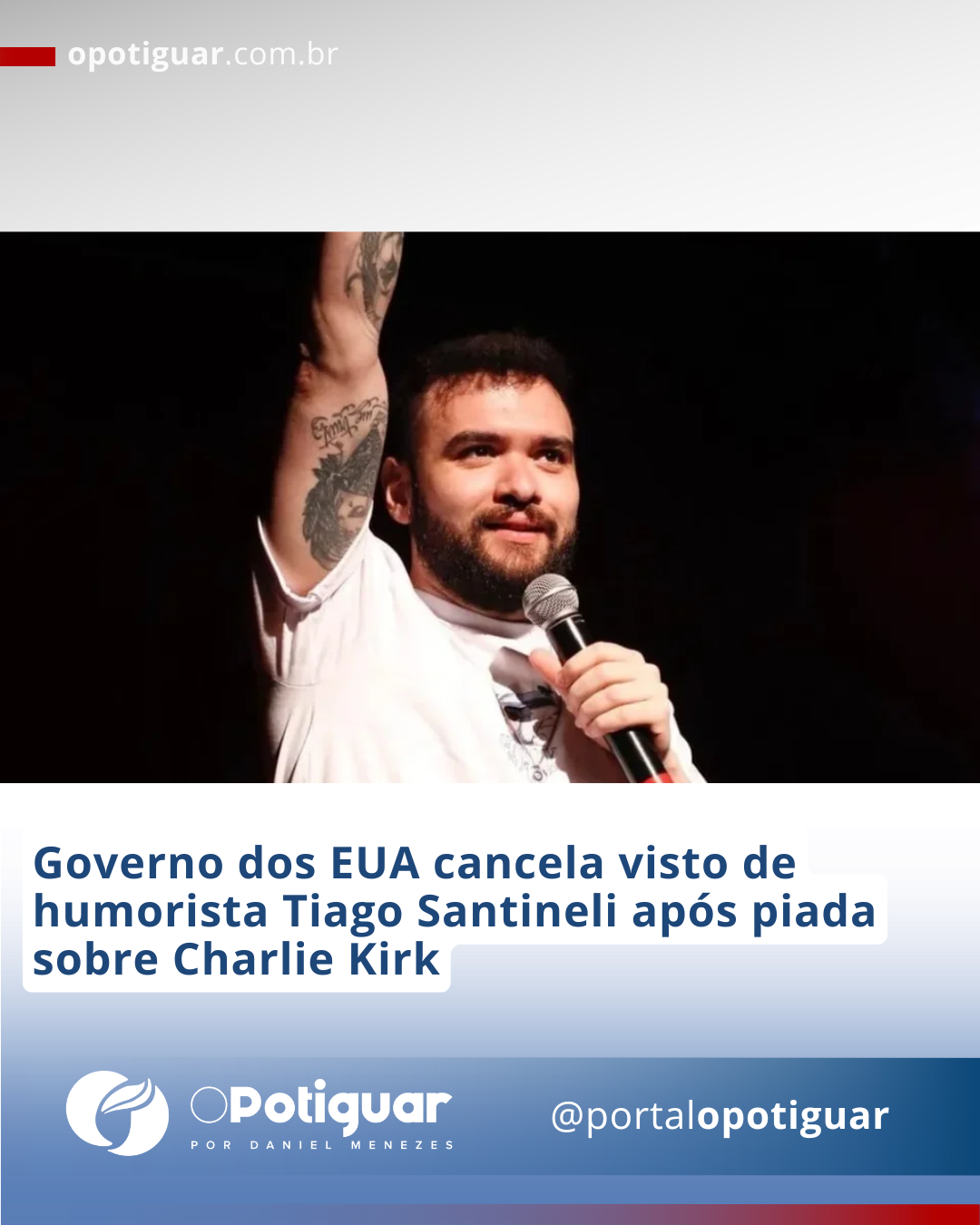 O humorista e militante de esquerda Tiago Santineli teve o visto dos Estados Unidos cancelado, no último dia 29, pelo governo de Donald Trump após fazer uma piada sobre o assassinato de Charlie Kirk, um dos principais líderes da extrema direita norte-americana. O comentário foi publicado na rede social “X”, antigo Twitter.