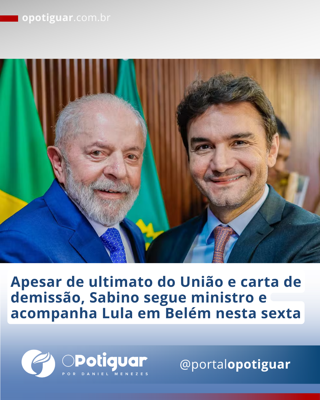 Apesar do gesto formal de entregar pedido de demissão, Sabino vem resistindo a sair do governo. Nos bastidores, Sabino chegou a atuar para permanecer no cargo, movimento que tem desagradado o União Brasil.