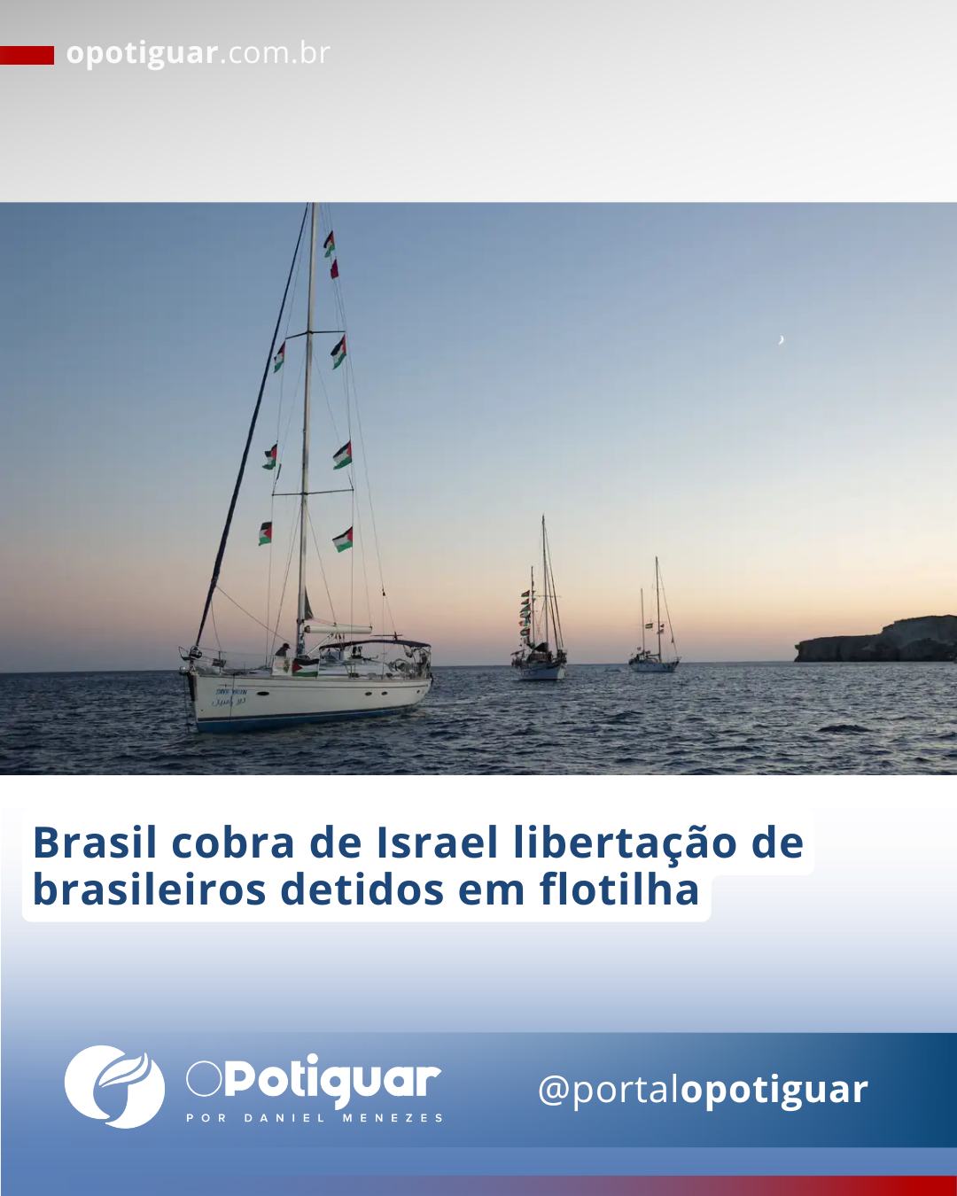 O Ministério das Relações Exteriores divulgou nota, nesta quinta-feira (2), cobrando a libertação imediata dos brasileiros detidos após interceptação da flotilha a caminho de Gaza por militares israelenses.