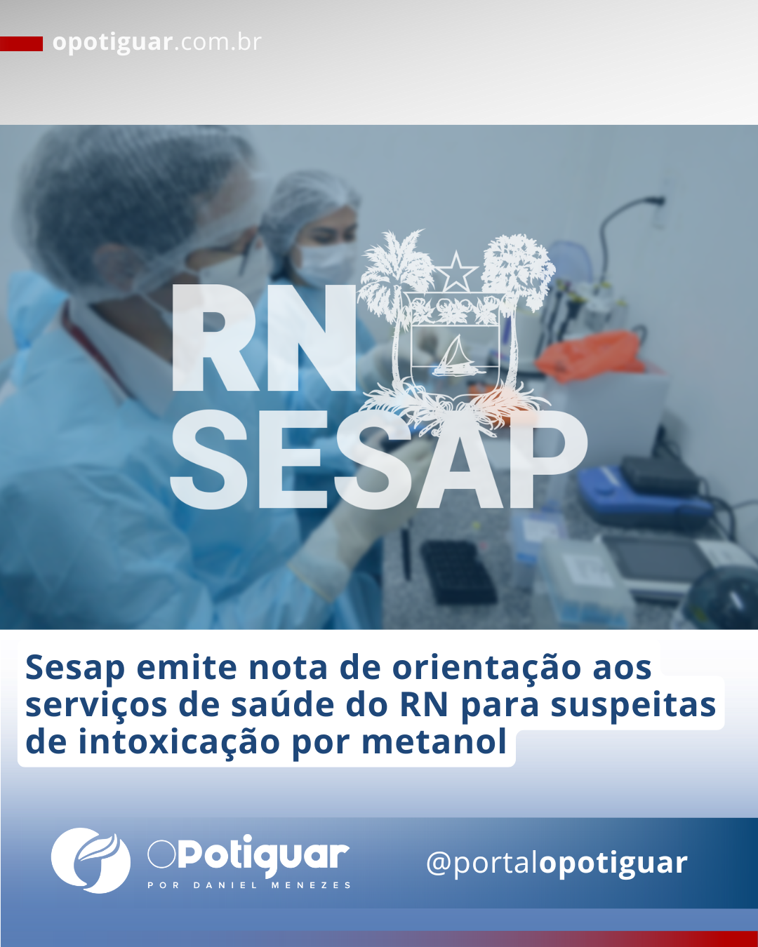 A Secretaria de Estado da Saúde Pública (Sesap) emitiu, nesta quinta-feira (2), a primeira nota técnica de orientação aos municípios do Rio Grande do Norte tratando da detecção precoce, manejo clínico e notificação imediata de casos suspeitos e confirmados de intoxicação por metanol, seguindo a orientação do Ministério da Saúde.