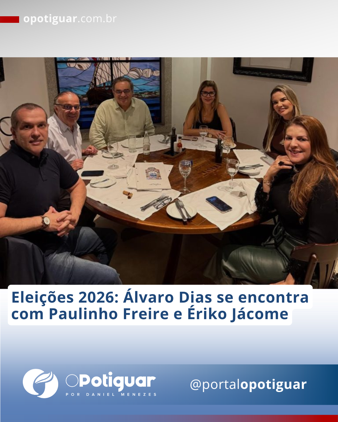 O prefeito de Natal, Paulinho Freire (União), o ex-prefeito Álvaro Dias (Republicanos) e o presidente da Câmara Municipal, Ériko Jácome (PP), se reuniram em um restaurante em São Paulo, neste sábado (4). O encontro, que também contou com a presença das esposas dos políticos, foi registrado em uma foto publicada nas redes sociais de Álvaro Dias e ocorre em um momento de intensas articulações para as eleições de 2026.