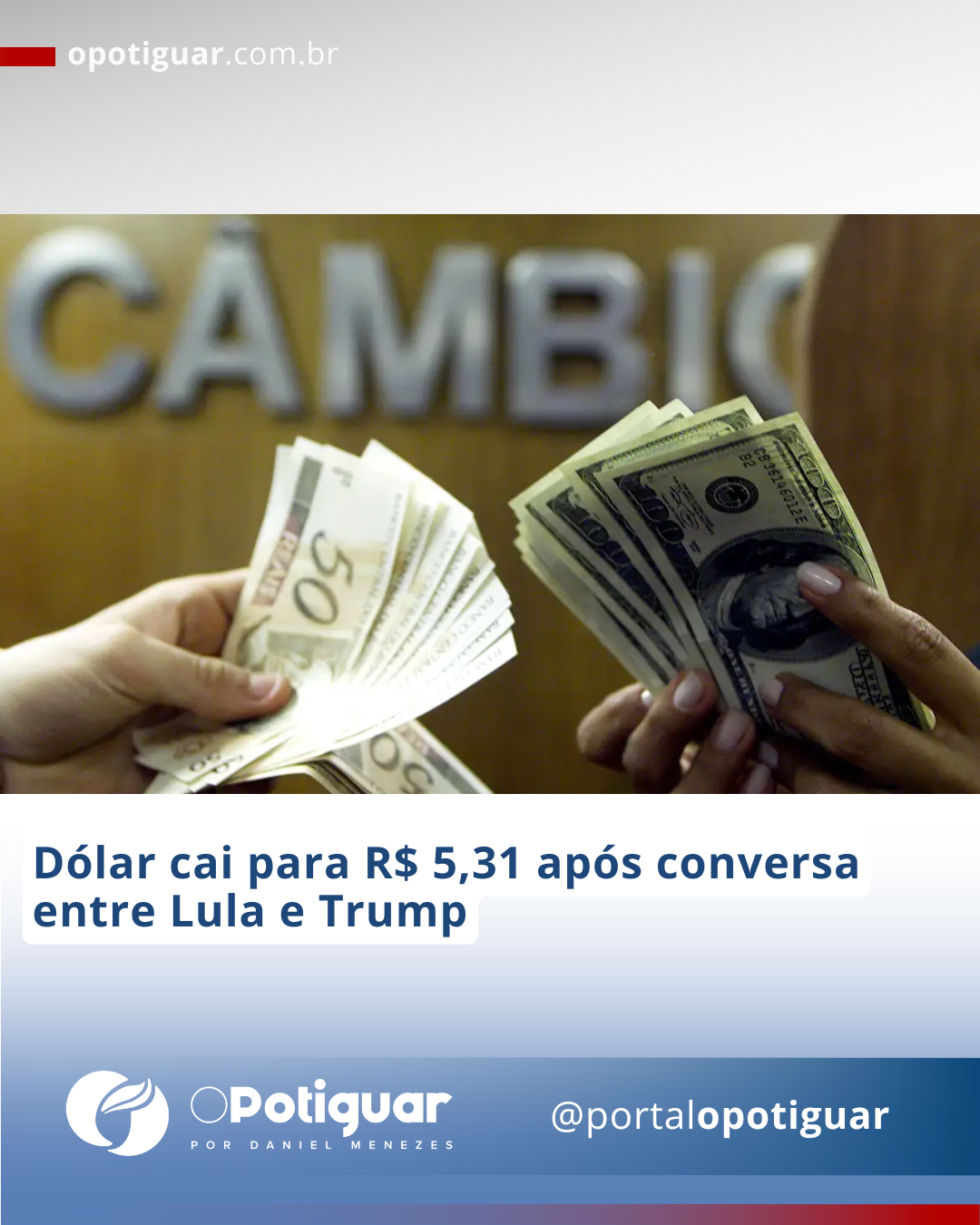Dólar cai para R$ 5,31 após conversa entre Lula e Trump