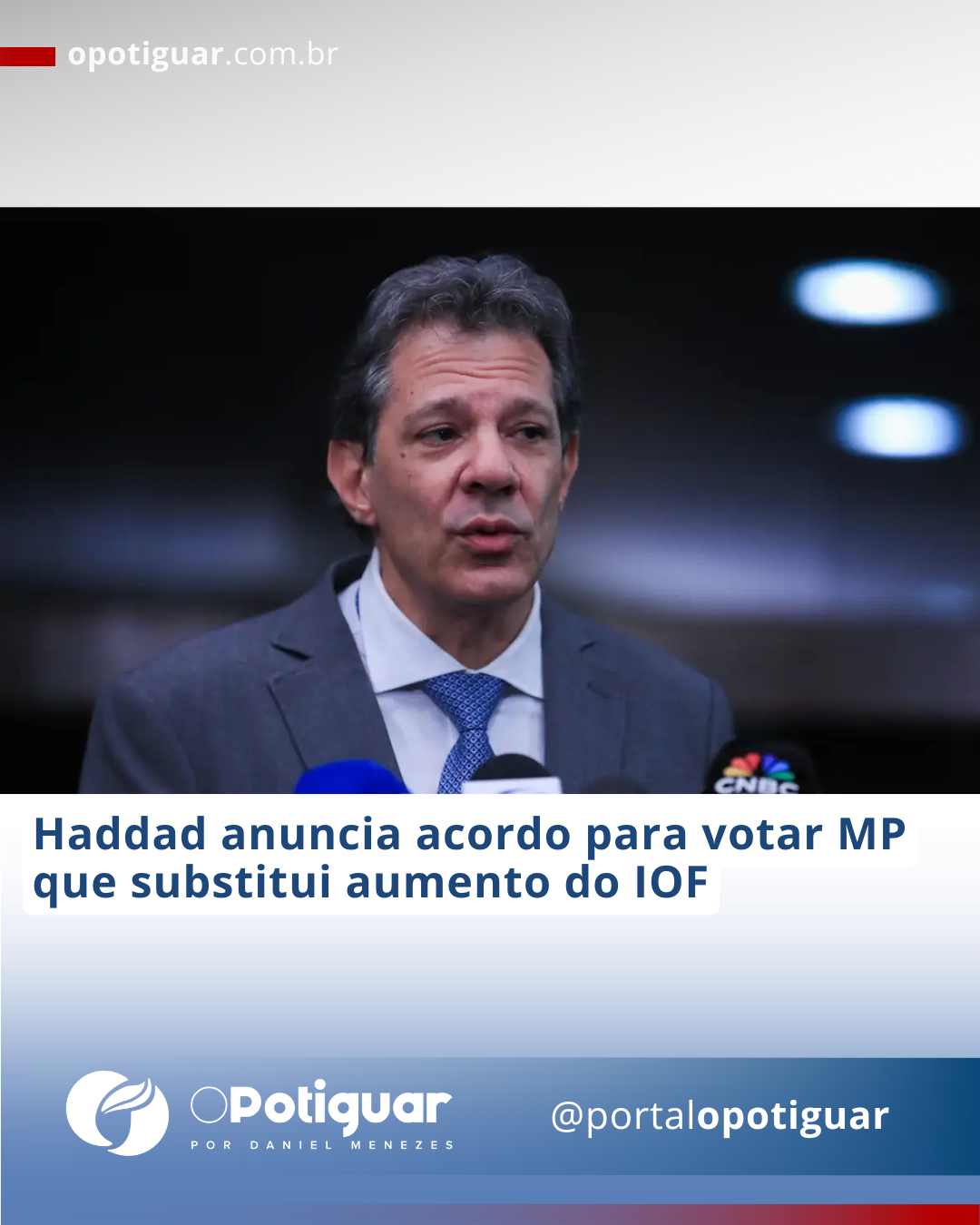 O governo, o Senado e a Câmara dos Deputados chegaram a um acordo para votação da Medida Provisória (MP) que substitui o aumento do Imposto sobre Operações Financeiras (IOF), disse nesta terça-feira (7) o ministro da Fazenda, Fernando Haddad. Segundo ele, todas as partes fizeram concessões, que devem resultar em perda de cerca de R$ 3 bilhões na arrecadação prevista para 2026.