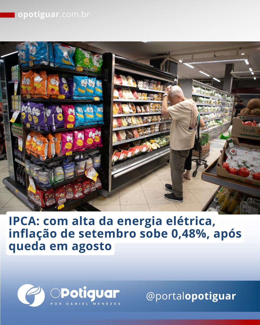 Do Estadão - O Índice Nacional de Preços ao Consumidor Amplo (IPCA) fechou setembro com alta de 0,48%, ante um recuo de 0,11% em agosto, informou nesta quinta-feira, 9, o Instituto Brasileiro de Geografia e Estatística (IBGE).