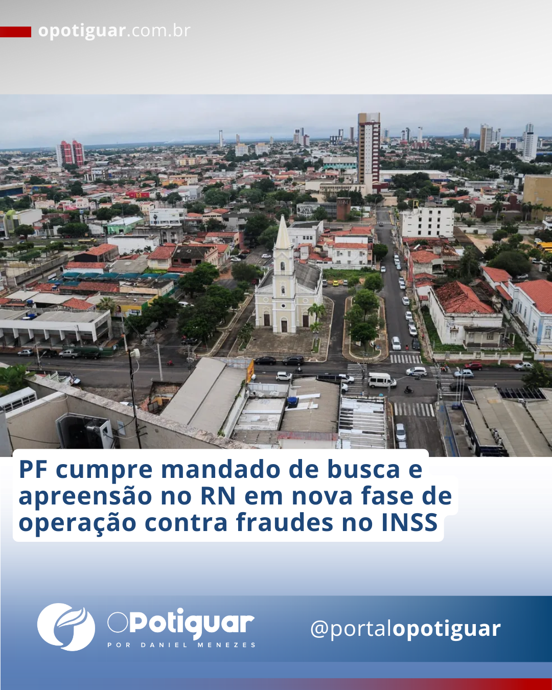 G1 - A Polícia Federal cumpre um mandado de busca e apreensão no Rio Grande do Norte, nesta quinta-feira (9), dentro da nova fase da ‘Operação Sem Desconto’, que apura descontos indevidos em aposentadorias e benefícios do INSS.