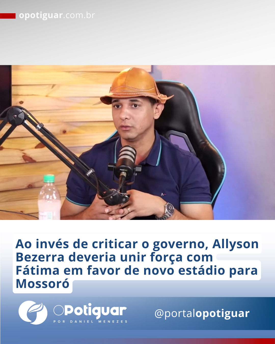 A governadora Fátima Bezerra anunciou plano para novo estádio de futebol em Mossoró. Com o Nogueirão interditado, não era hora de Allyson Bezerra, em entrevista esta semana, criticar a proposta. Ele insinuou que a ideia é eleitoreira.