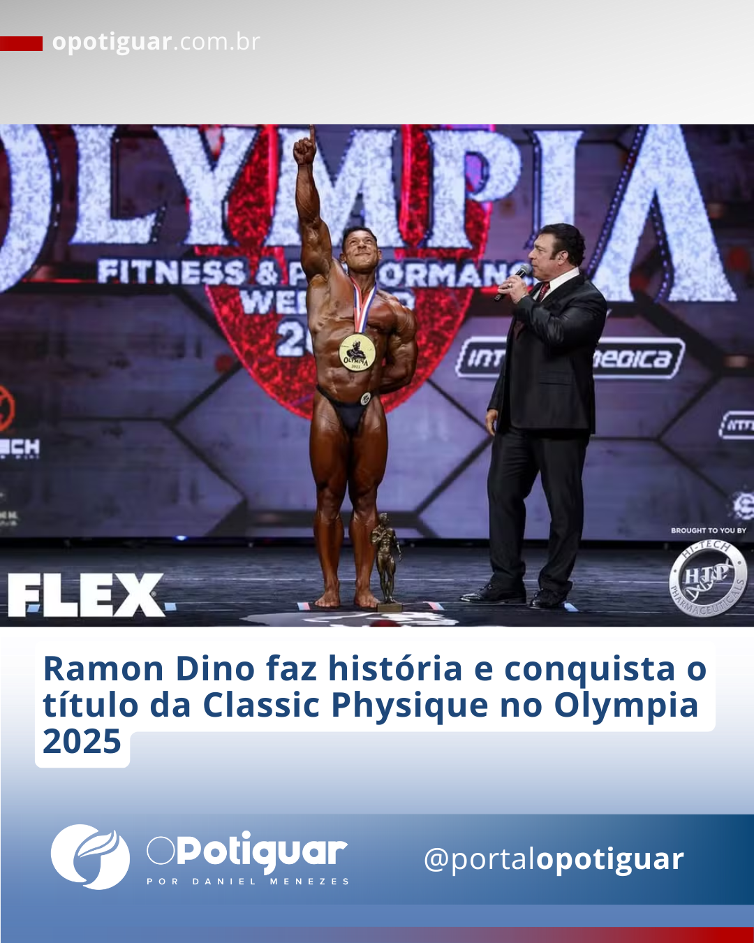 Ramon Dino conquista o título do Mr. Olympia 2025 na Classic Phisique — Foto: Divulgação/Instagram Mr. Olympia