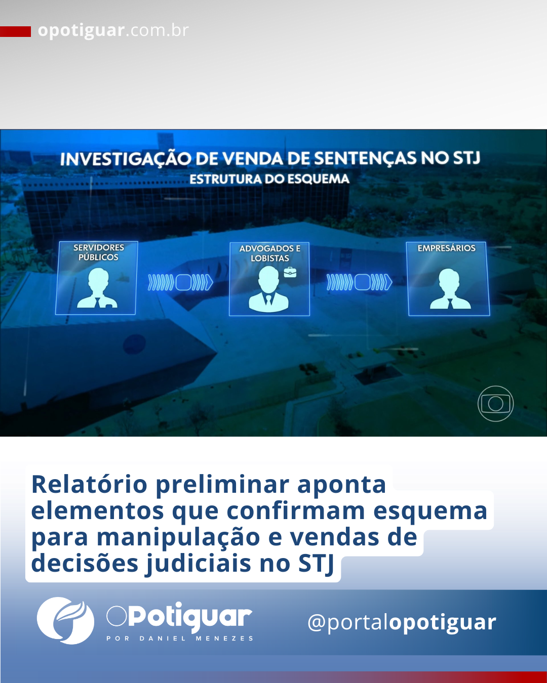 Do Jornal Nacional - Um relatório preliminar da Polícia Federal apontou que há elementos que confirmam um esquema estruturado para a manipulação e a venda de decisões judiciais que envolvem gabinetes do Superior Tribunal de Justiça.