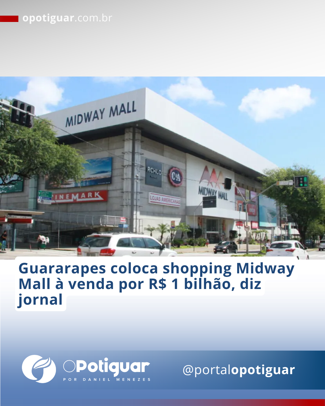 O Midway Mall, um dos maiores shoppings da região Nordeste, está à venda. O grupo Guararapes, controlador da varejista Riachuelo e proprietário do empreendimento em Natal, contratou o banco BTG Pactual como assessor financeiro. A informação foi divulgada pelo Pipeline.