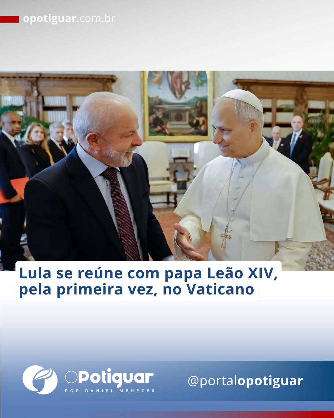 Acompanharam Lula no encontro com Leão XIV a primeira-dama Janja da Silva, os ministros das Relações Exteriores, Mauro Vieira, do Desenvolvimento e Assistência Social, Família e Combate à Fome, Wellington Dias, e do Desenvolvimento Agrário e Agricultura