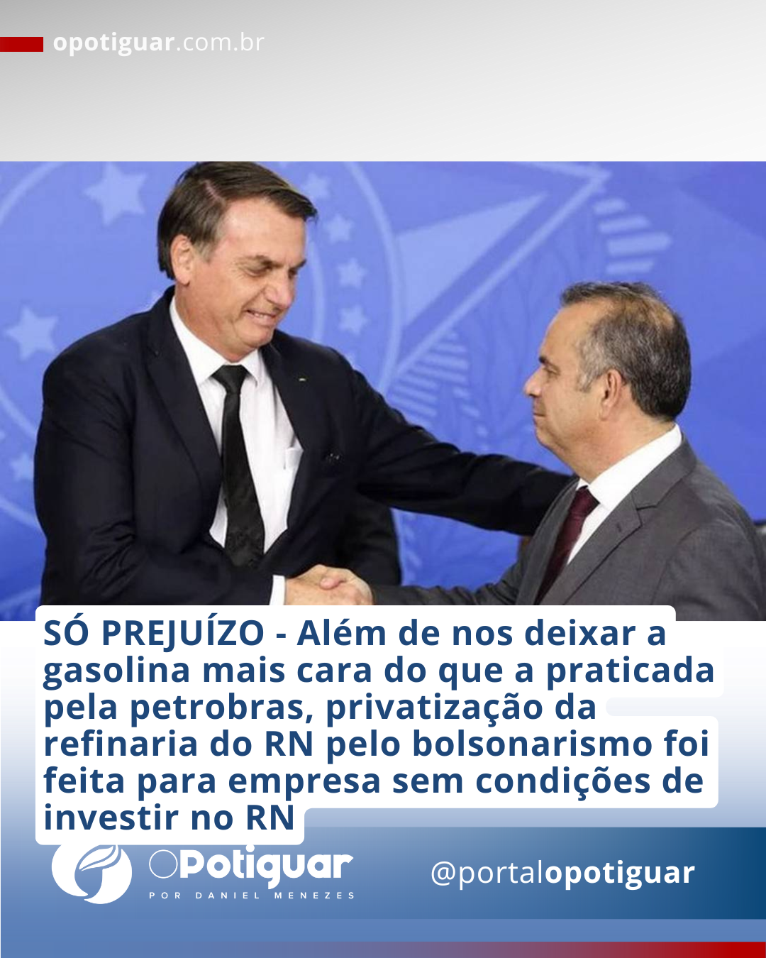 SÓ PREJUÍZO - Além de nos deixar a gasolina mais cara do que a praticada pela petrobras, privatização da refinaria do RN pelo bolsonarismo foi feita para empresa sem condições de investir no RN