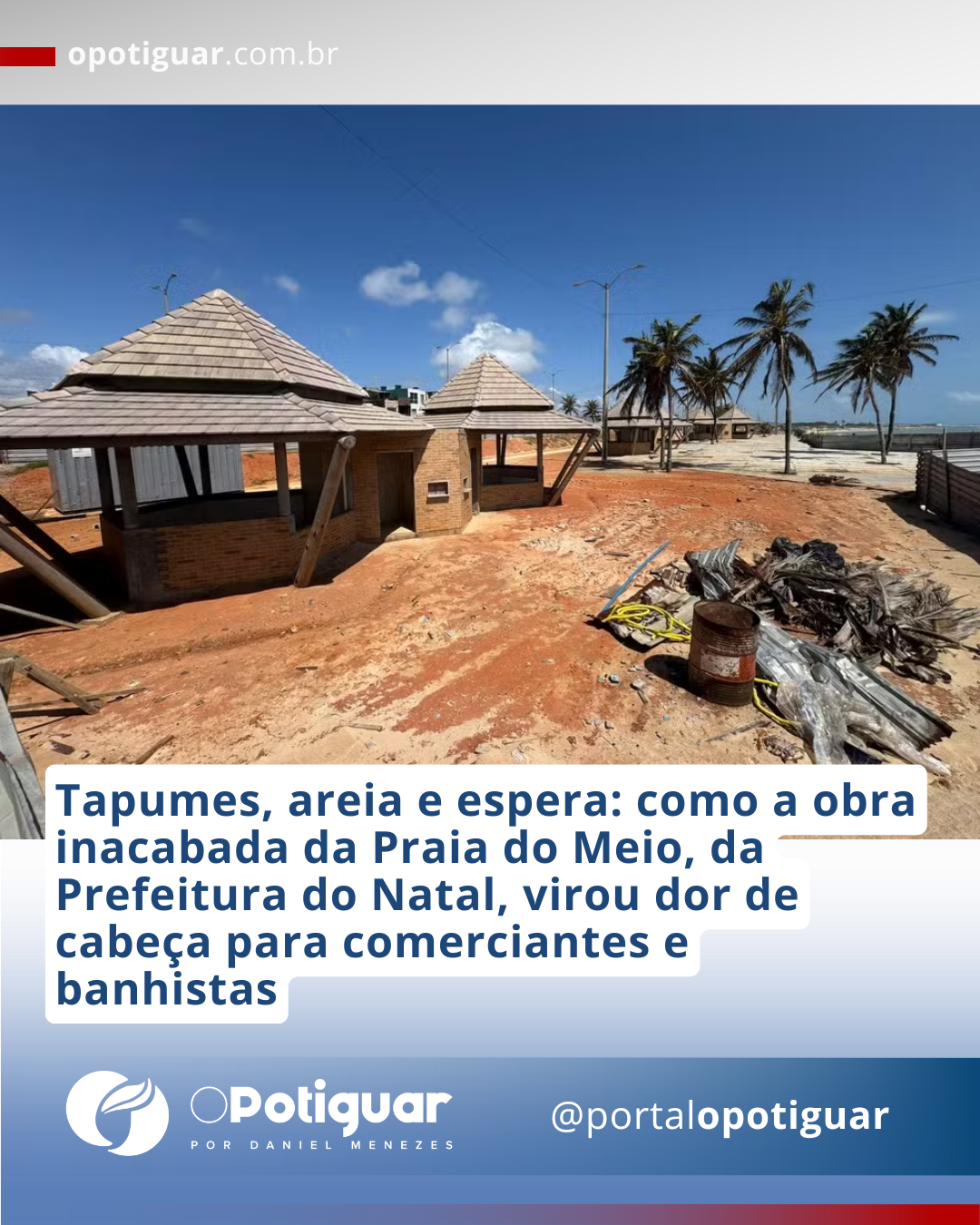 Tapumes, areia e espera: como a obra inacabada da Praia do Meio, da Prefeitura do Natal, virou dor de cabeça para comerciantes e banhistas