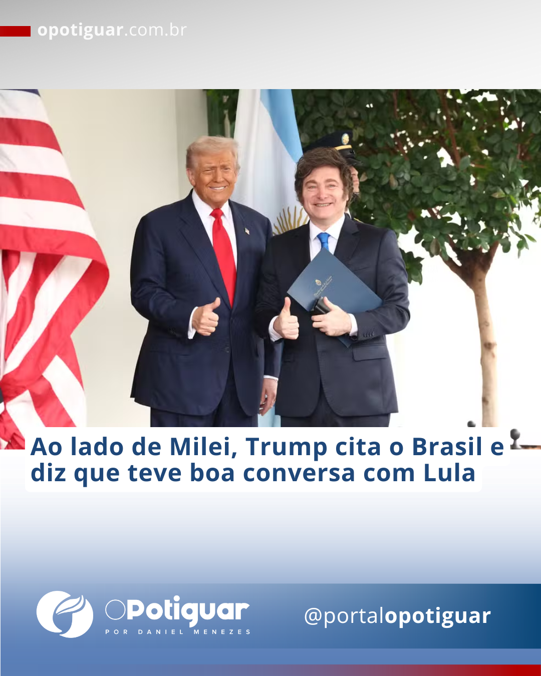 G1 - O presidente dos Estados Unidos, Donald Trump, citou o Brasil durante uma reunião com o líder argentino, Javier Milei. Trump mencionou o encontro que teve com o presidente Luiz Inácio Lula da Silva (PT) nas Nações Unidas e disse tido uma "boa conversa" com o brasileiro. Lula e Milei são adversários políticos.
