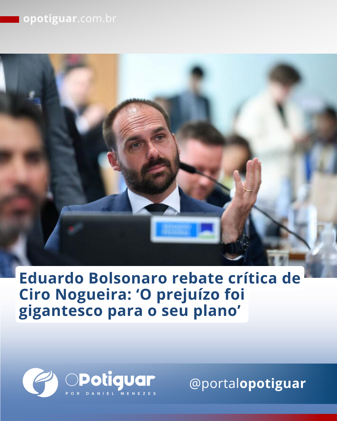 Estadão - O deputado federal Eduardo Bolsonaro (PL-SP) usou as redes sociais, nesta segunda-feira, 13,para rebater uma crítica feita pelo presidente do PP e ex-ministro do governo Bolsonaro, Ciro Nogueira. O ex-ministro afirmou que as ações de Eduardo nos Estados Unidos causaram um “prejuízo gigantesco” para as próximas eleições presidenciais.