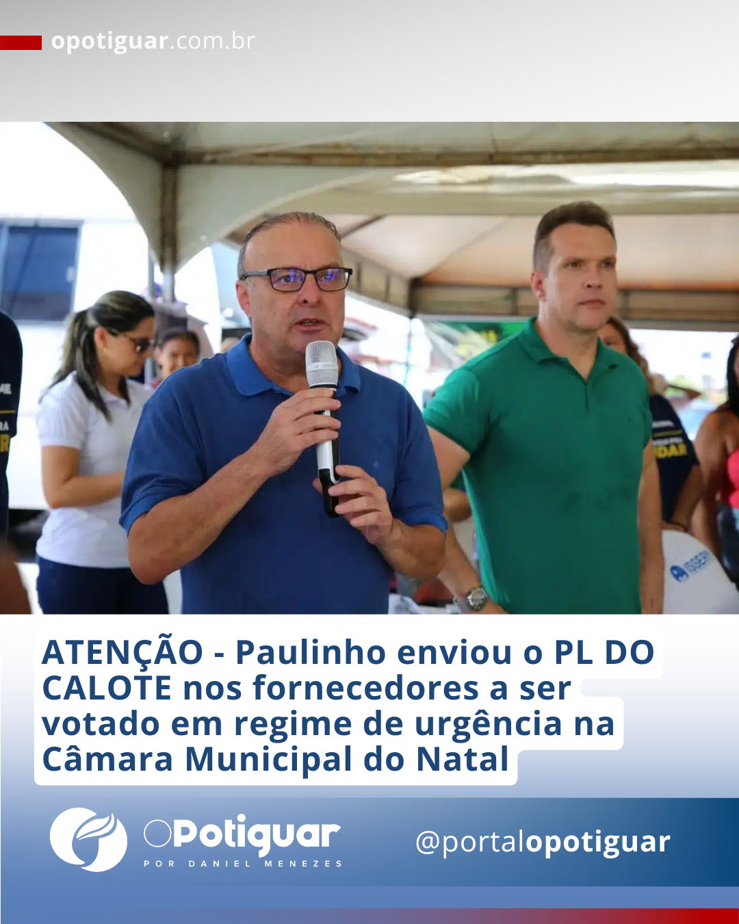 ATENÇÃO - Paulinho enviou o PL DO CALOTE nos fornecedores a ser votado em regime de urgência na Câmara Municipal do Natal