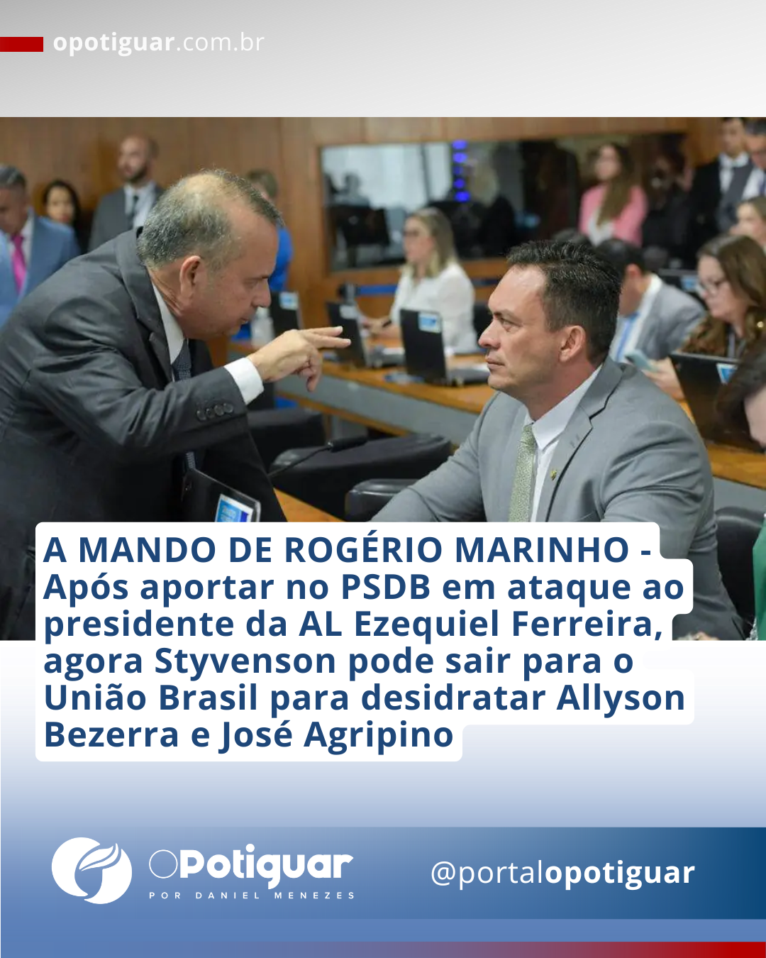 A MANDO DE ROGÉRIO MARINHO - Após aportar no PSDB em ataque ao presidente da AL Ezequiel Ferreira, agora Styvenson pode sair para o União Brasil para desidratar Allyson Bezerra e José Agripino