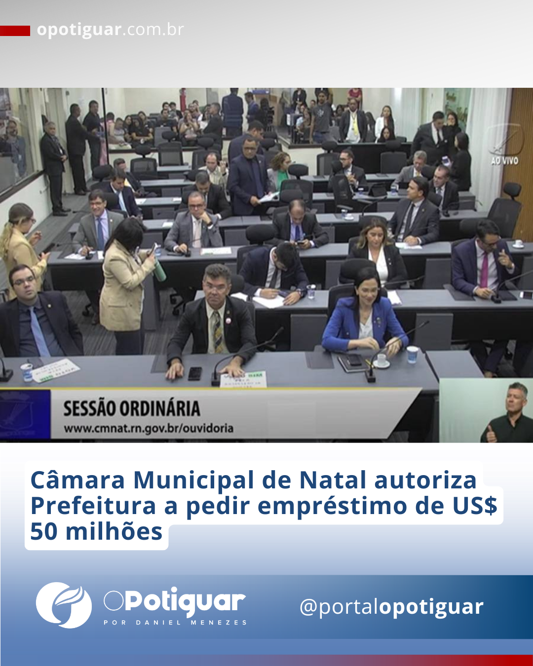 Da 98fm - A Câmara Municipal de Natal autorizou, nesta quinta-feira (16), em sessão ordinária, o Projeto de Lei (PL) que permite que a Prefeitura de Natal solicite um empréstimo de US$ 50 milhões ao Banco Mundial (BIRD). Agora, o projeto segue para a sanção do prefeito de Natal, Paulinho Freire (União).