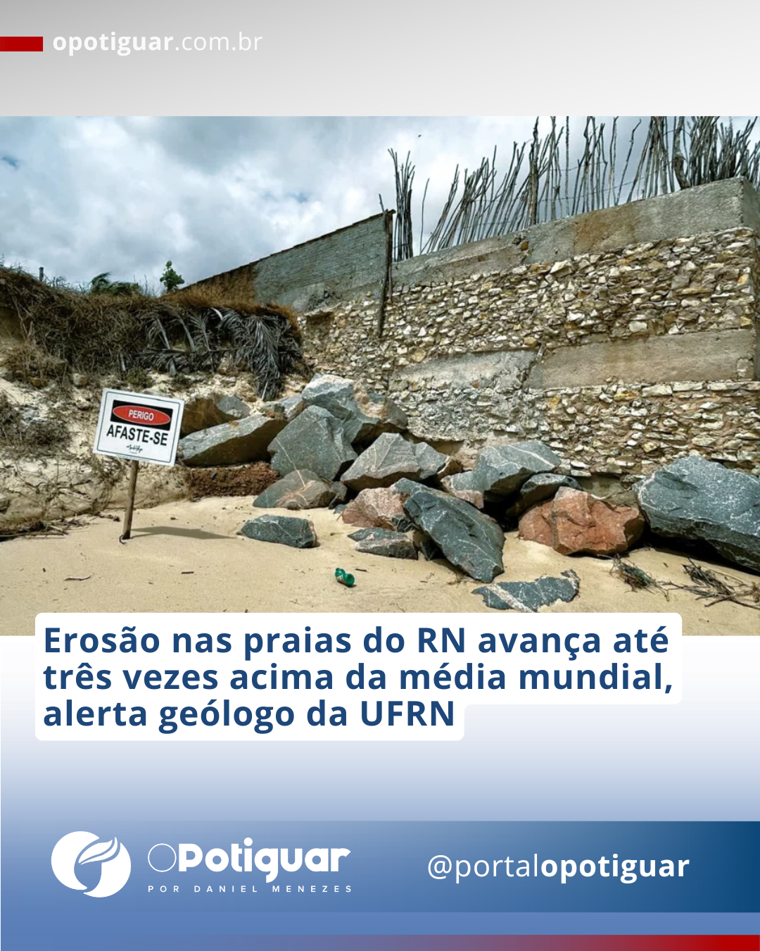 As praias do Rio Grande do Norte estão perdendo entre 1,2 e 1,6 metro por ano, taxas até três vezes superiores à média mundial de 0,5 metro anual para praias arenosas. O alerta é do geólogo e professor da UFRN, Venerando Amaro, coordenador do Laboratório de Geoprocessamento, que monitora o litoral potiguar. Segundo ele, as principais praias do estado estão em situação crítica, com tendência de agravamento nos próximos anos.
