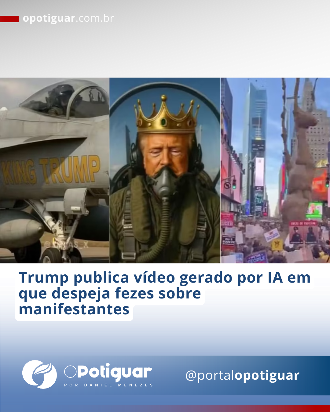 Trump publica vídeo gerado por IA em que despeja fezes sobre manifestantes