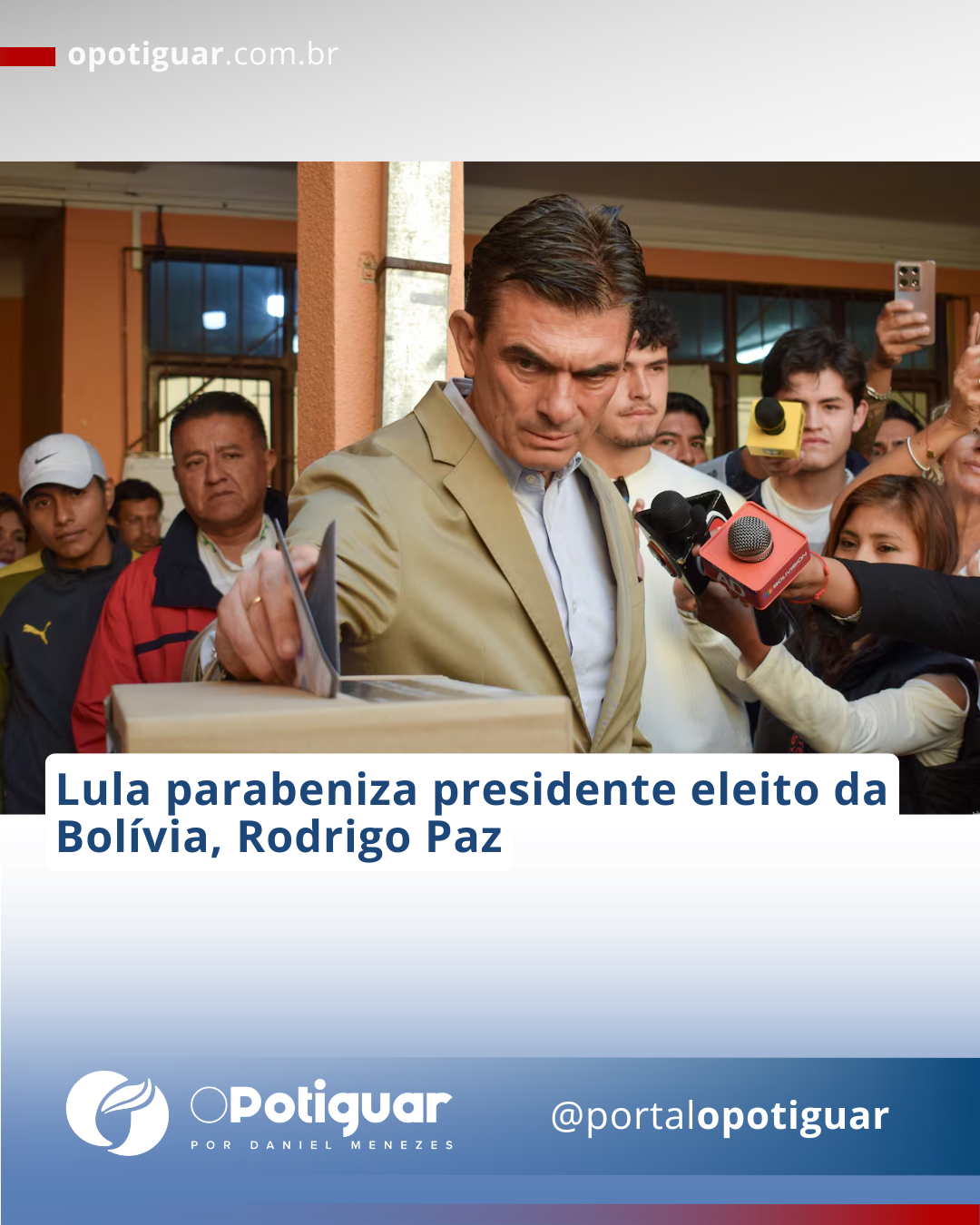 O presidente Luiz Inácio Lula da Silva parabenizou o presidente eleito da Bolívia, Rodrigo Paz, pela vitória nas urnas neste domingo (19). Em publicação nas redes sociais, nesta segunda-feira (20), Lula contou que encaminhou uma carta ao boliviano, que é senador pelo Partido Democrata Cristão (PDC), de centro-direita.