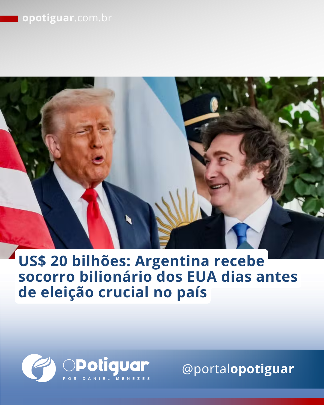 Os Estados Unidos também prometeram ao presidente argentino, Javier Milei, outros US$ 20 bilhões, em recursos públicos e privados, para enfrentar as turbulências do mercado — desde que ele alcance um bom resultado nas urnas. Ao todo, o socorro financeiro à Argentina soma US$ 40 bilhões (o equivalente a R$ 217,6 bilhões).