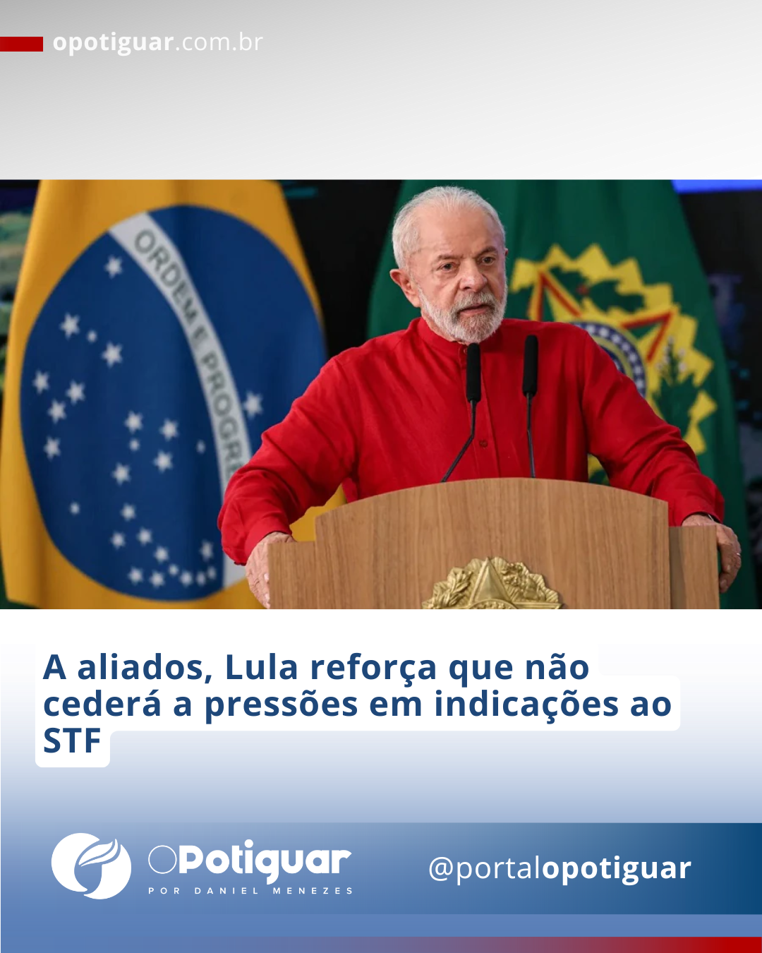 O presidente Luiz Inácio Lula da Silva (PT) salientou que não cederá mais a pressões em indicações ao STF (Supremo Tribunal Federal). As informações são do jornalista Gustavo Uribe, da CNN Brasil.
