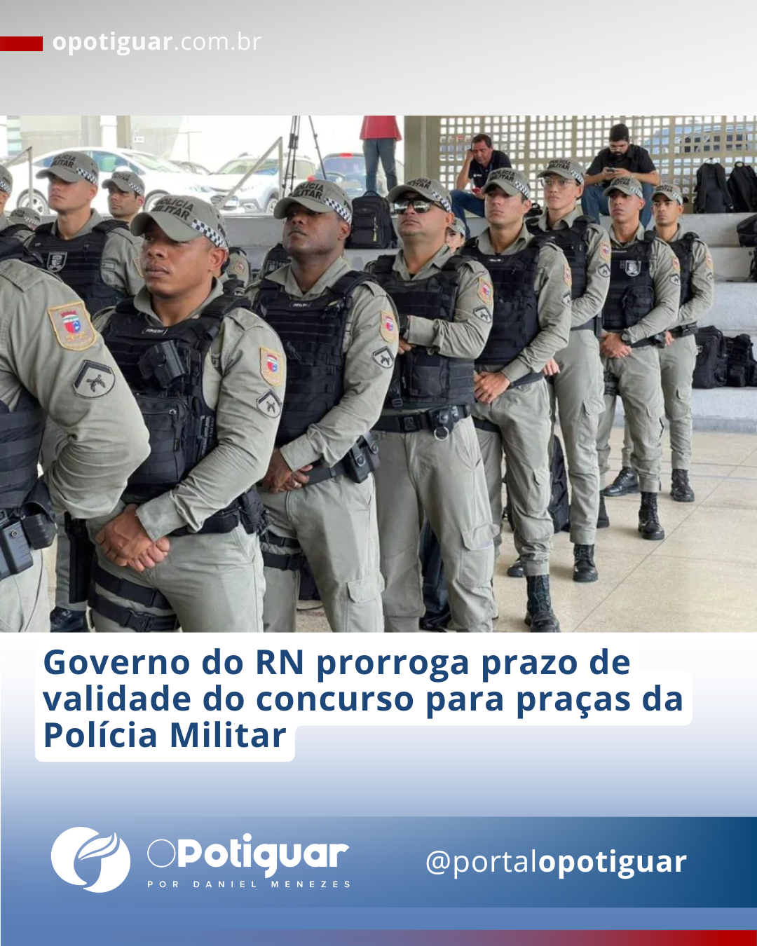 O Governo do RN prorrogou a validade do Concurso Público para o Curso de Formação de Praças da Polícia Militar do Rio Grande do Norte. A medida foi assinada na manhã desta terça-feira (21), pela governadora Fátima Bezerra.