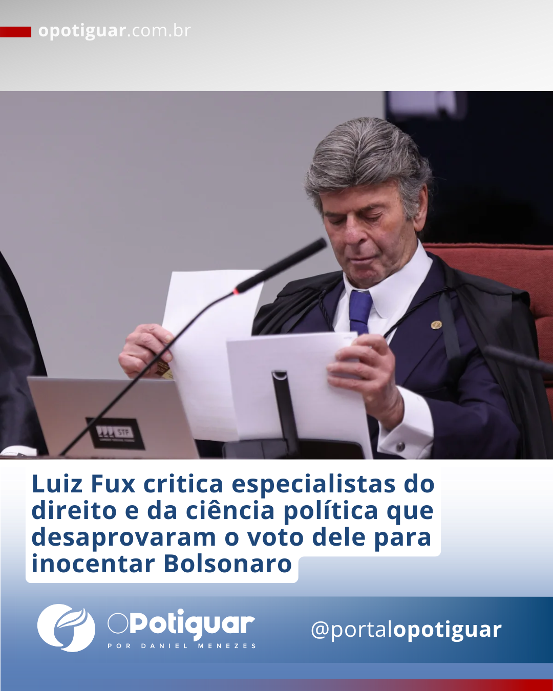 Luiz Fux critica especialistas do direito e da ciência política que desaprovaram o voto dele para inocentar Bolsonaro