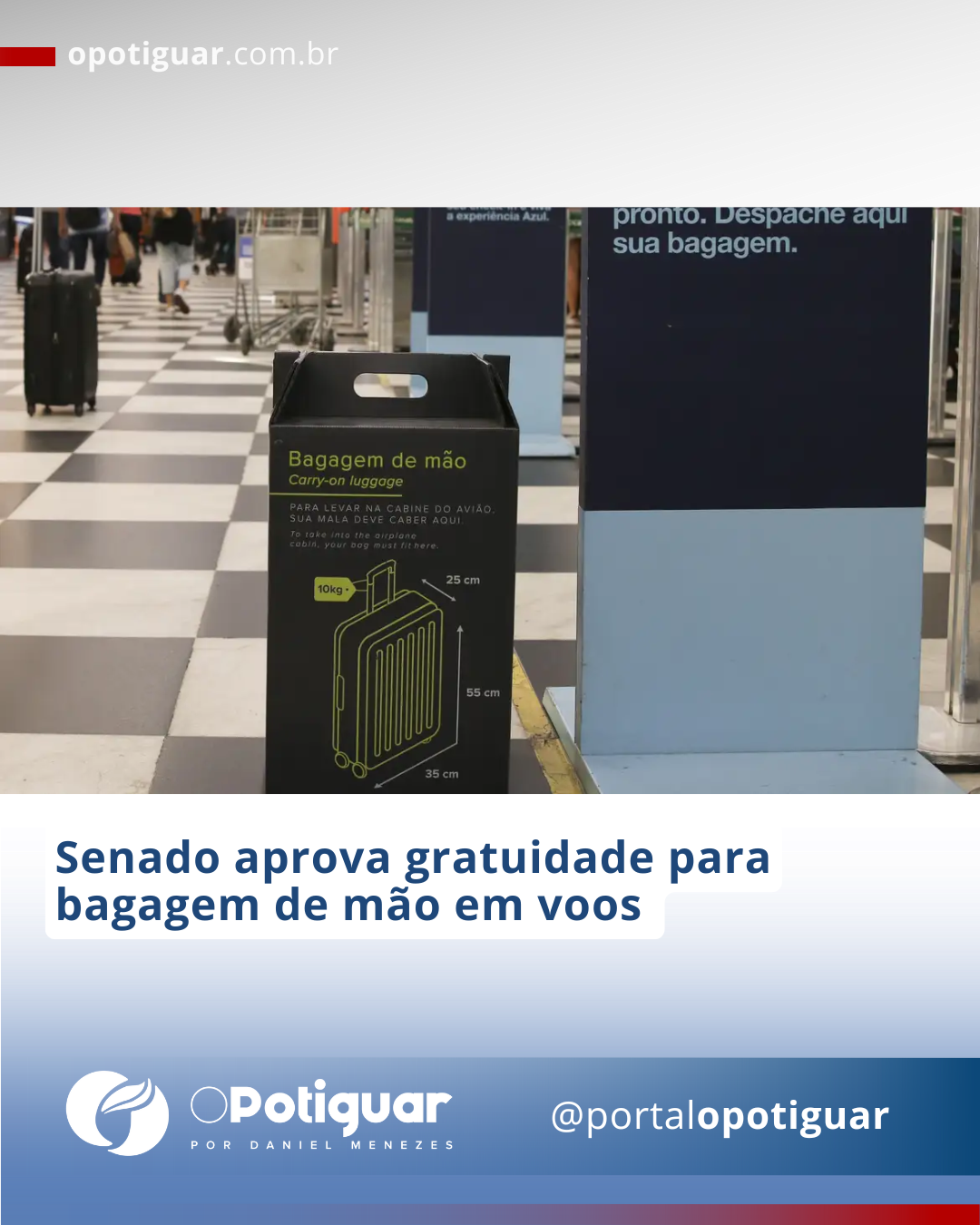 A Comissão de Constituição e Justiça (CCJ) do Senado aprovou nesta quarta-feira (22), de forma, o Projeto de Lei (PL) 120/2020, que estabelece que passageiros de voos nacionais e internacionais poderão transportar gratuitamente até 10 quilos de bagagem de mão, com dimensões padronizadas, sem cobrança adicional por parte das companhias aéreas. A matéria segue para votação na Câmara dos Deputados.