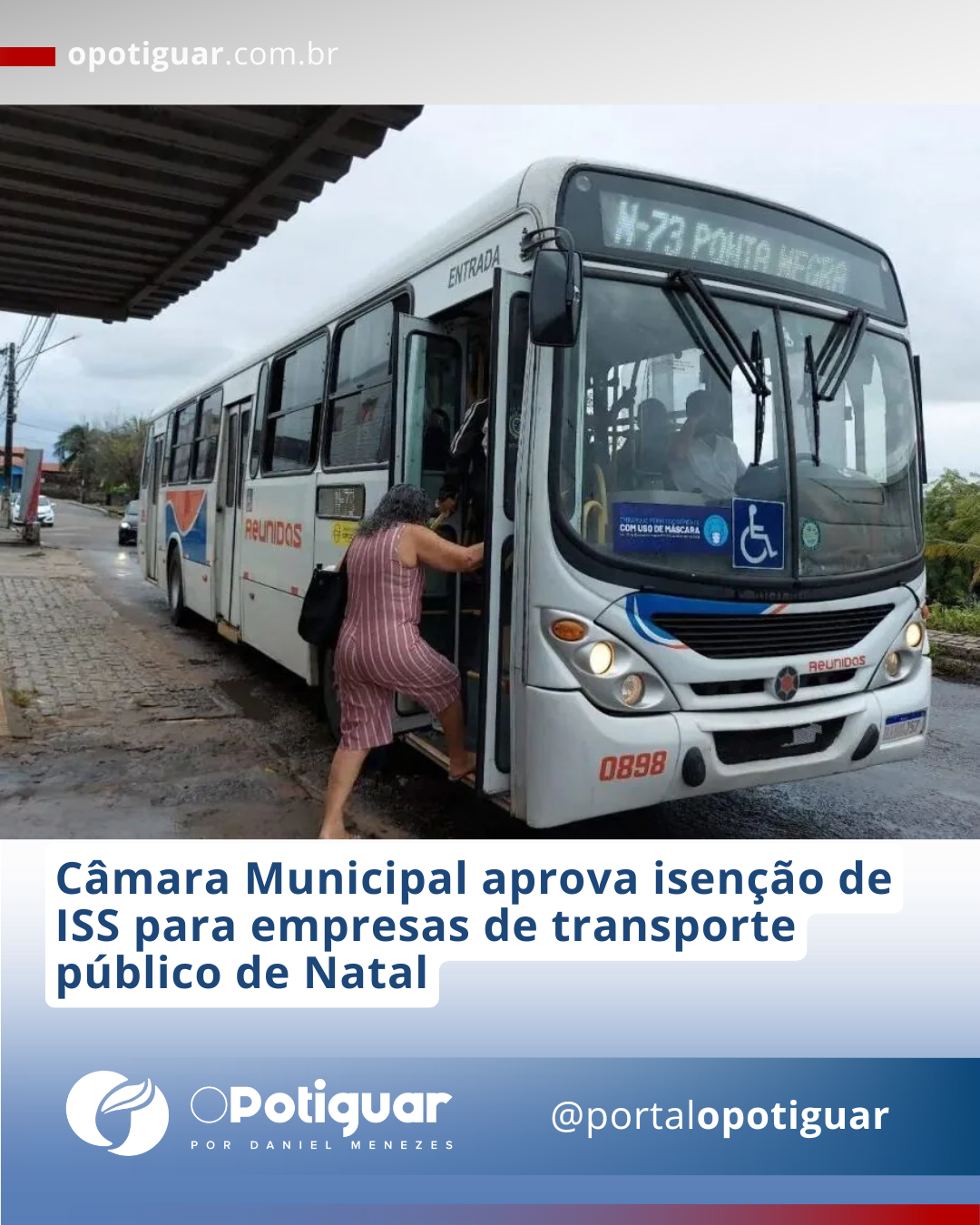 O plenário da Câmara Municipal de Natal aprovou, nesta quinta-feira (23), o projeto de lei (PL) 811/2025, que garante a isenção do Imposto Sobre Serviços de Qualquer Natureza (ISSQN) às empresas de ônibus de Natal.