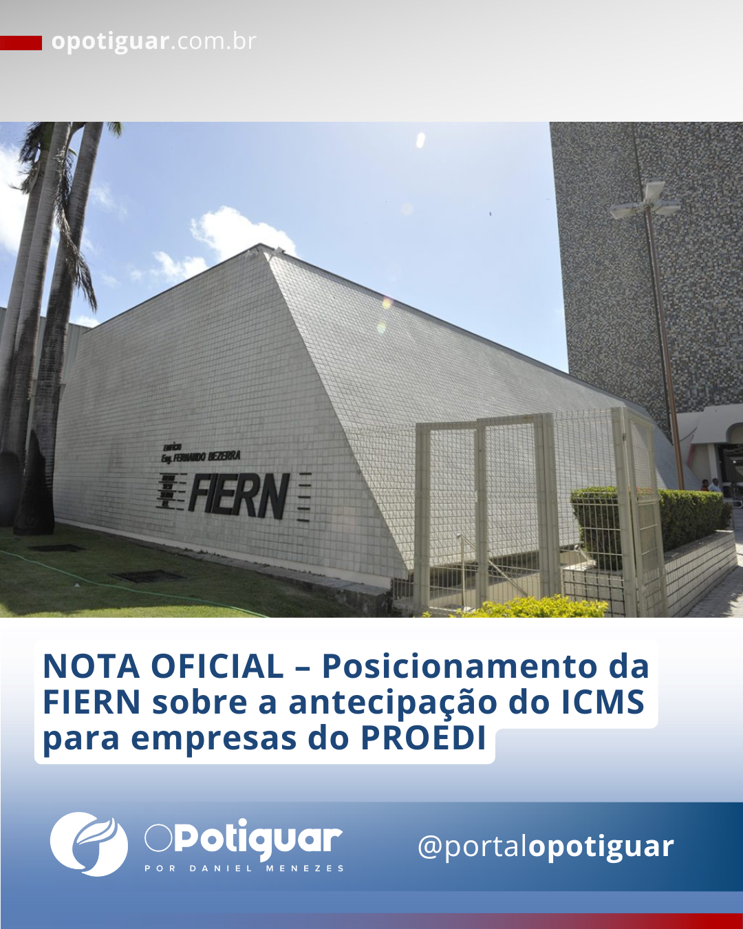 NOTA OFICIAL – Posicionamento da FIERN sobre a antecipação do ICMS para empresas do PROEDI