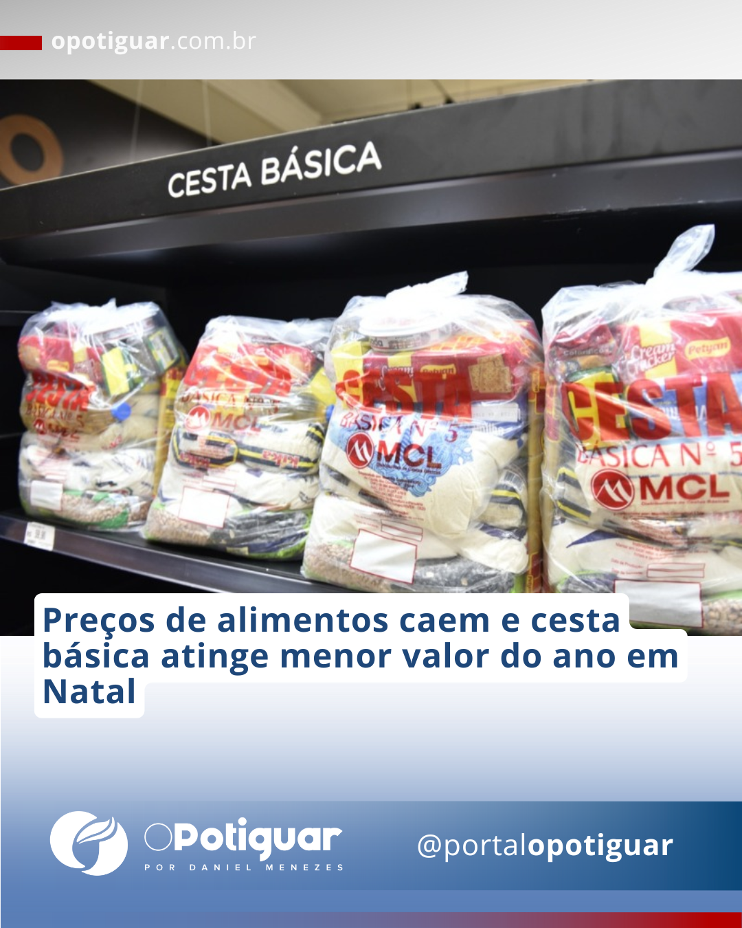 Os preços dos alimentos da cesta básica estão em queda em Natal. Em setembro, a Coordenadoria de Estudos Socioeconômicos do Idema registrou redução de (-0,6%), em relação ao mês anterior. O valor da cesta caiu para R$ 594,79, menor valor de 2025. Dos treze produtos acompanhados mensalmente, sete ficaram mais baratos. As variações negativas ocorreram no leite, legumes, frutas, feijão, tubérculos, margarina e carne bovina. Óleo de cozinha, pão, açúcar, arroz e farinha tiveram variação positiva. O preço do café em pó, que vinha em sequência de queda nos meses de julho e agosto, ficou estável em setembro.