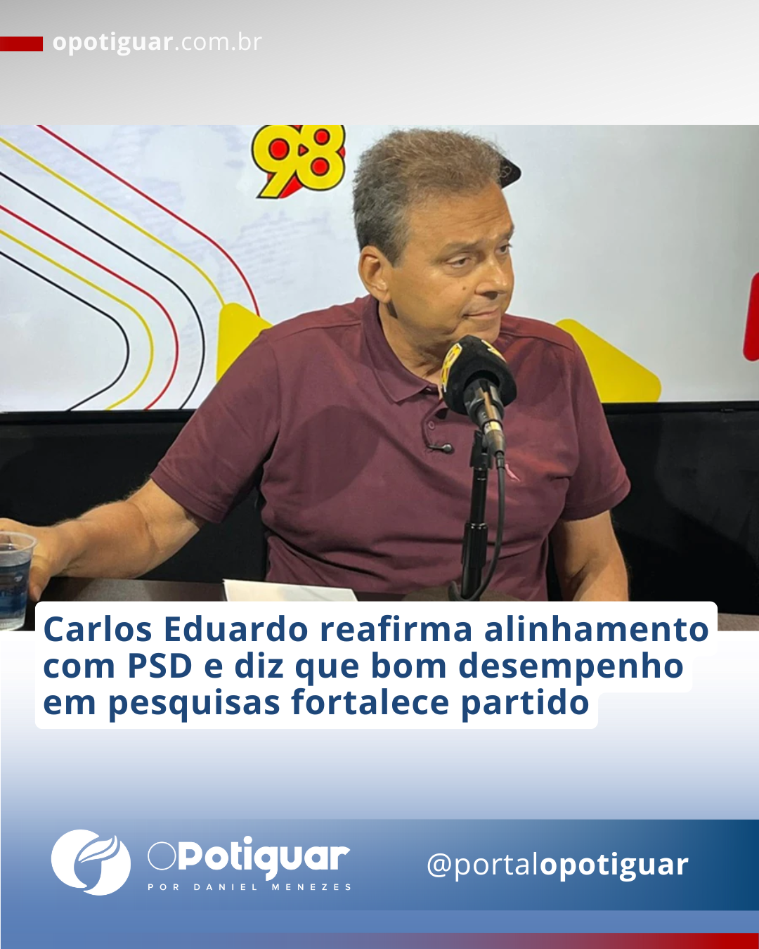 Da 98fm - O ex-prefeito de Natal, Carlos Eduardo Alves, reafirmou nesta segunda-feira (27) que permanece alinhado ao PSD e colocou seu nome à disposição do partido para o pleito de 2026. A declaração foi dada durante entrevista ao programa Repórter 98, da 98 FM Natal.