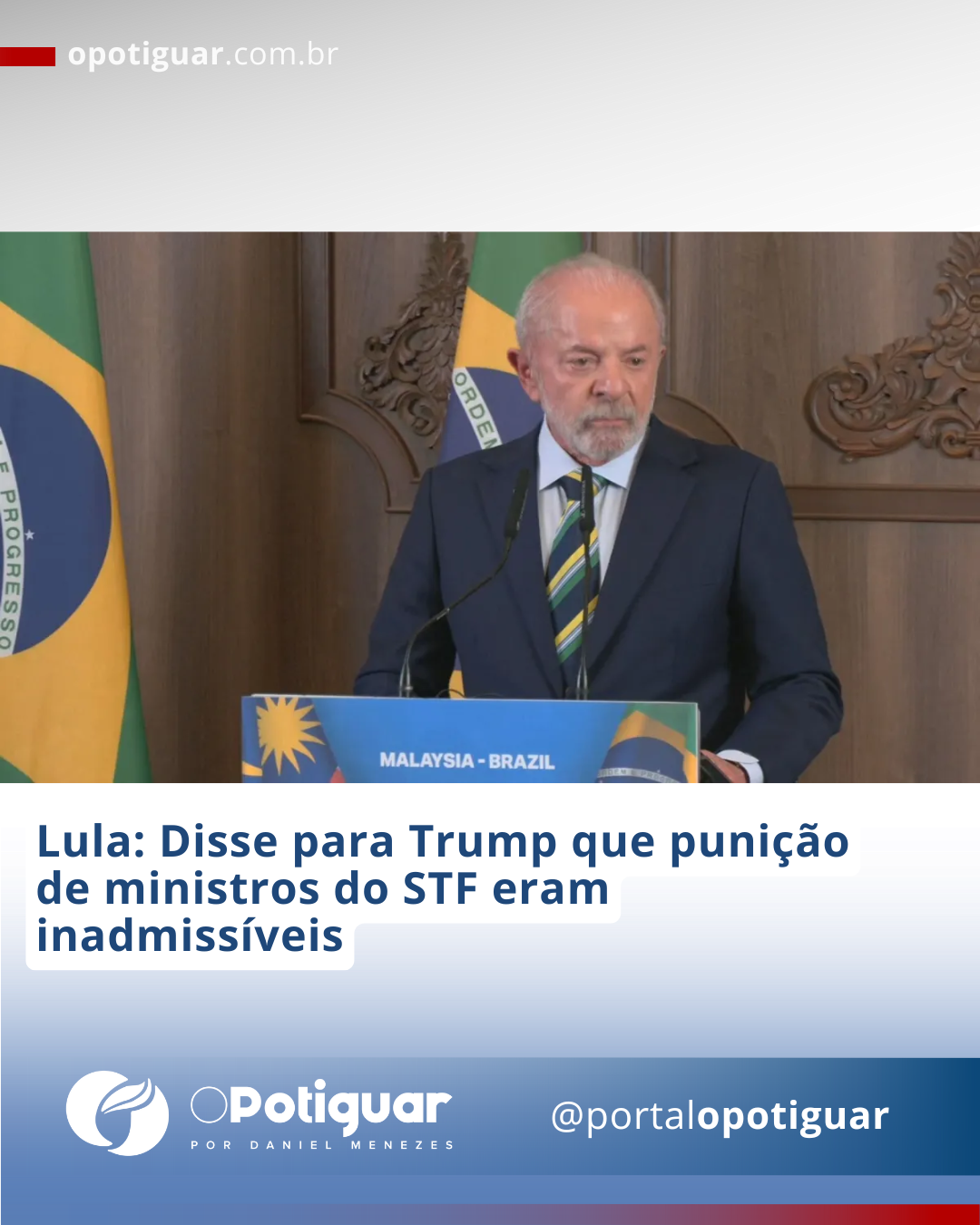 CNN - O presidente Luiz Inácio Lula da Silva (PT) disse, na madrugada desta segunda-feira (27), que falou durante a reunião com o presidente dos Estados Unidos, Donald Trump, que a punição aos ministros do STF (Supremo Tribunal Federal) eram "inadmissíveis".