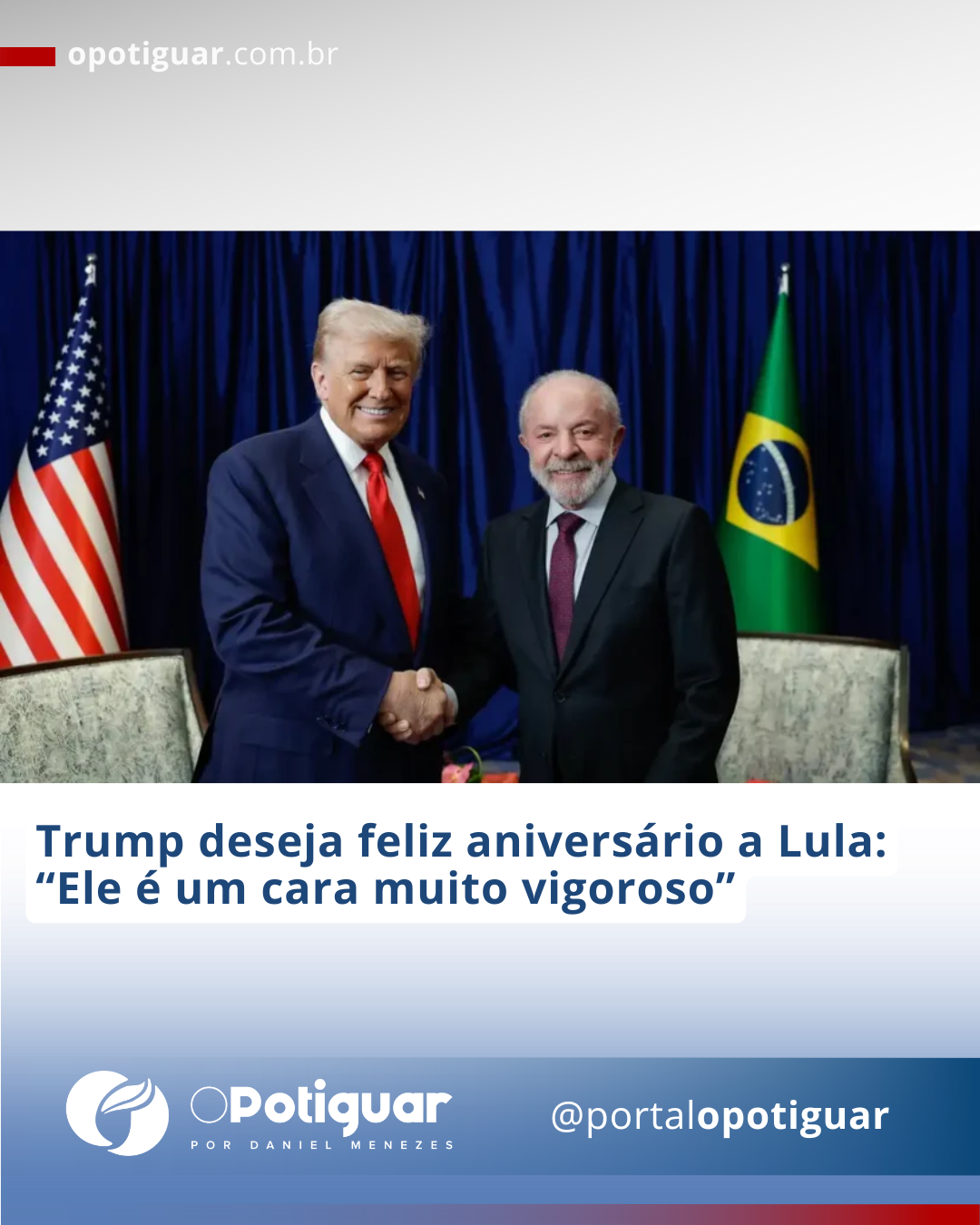A bordo do Air Force One, a caminho do Japão, Trump afirmou que teve uma “boa reunião com Lula”. Ele também comentou o aniversário do presidente brasileiro. “E feliz aniversário. Quero desejar feliz aniversário ao presidente, ok? Hoje é o aniversário dele. Ele é um cara muito vigoroso, na verdade, e foi muito impressionante, mas hoje é o aniversário dele, então feliz aniversário”, disse o americano.