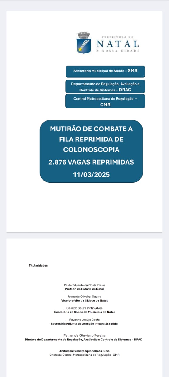 Como é possível perceber, em nenhum momento, desde 2024, a fila reprimida de colonoscopia esteve no patamar de 6 mil pacientes. Não deveria ser assim que a prefeitura do Natal aponta melhoria no serviço. Além de desonesto, ataca o trabalho sério de centenas de servidores da secretaria municipal de saúde que não participaram e não aceitam tais subterfúgios típicos da minúscula e mais rasteira politicagem.