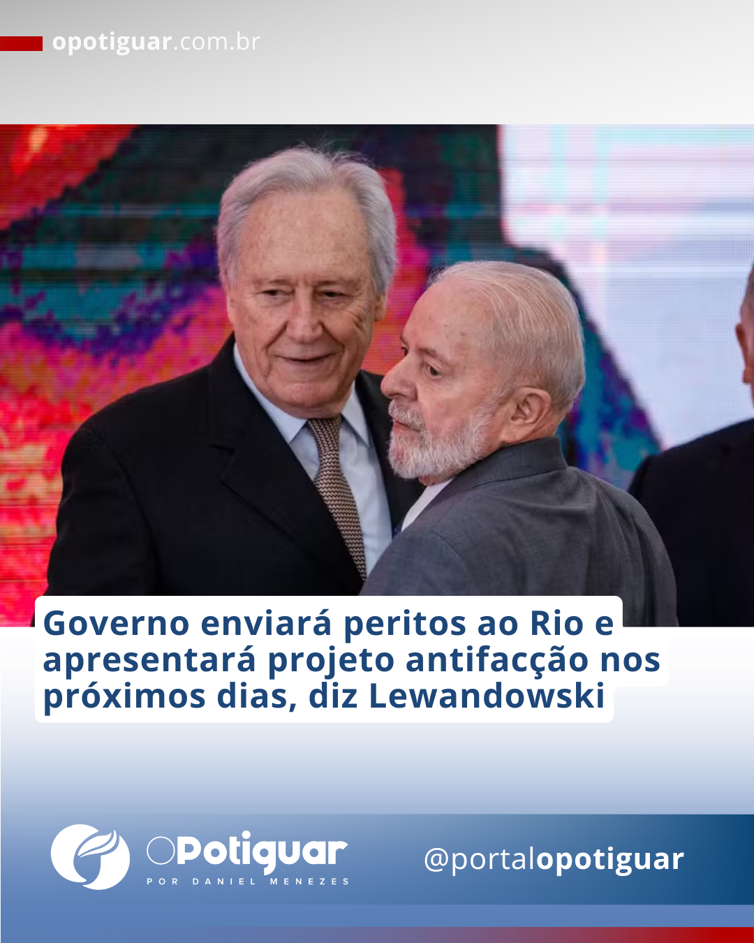 G1 - O ministro da Justiça, Ricardo Lewandowski, anunciou nesta quinta-feira (30) que o governo federal enviará "imediatamente" 20 peritos da Polícia Federal (PF) ao Rio de Janeiro para auxiliar nas investigações e perícias da megaoperação que deixou mais de 120 mortos nos complexos do Alemão e da Penha. Ele também afirmou que vai enviar o Projeto de Lei Antifacção ao Congresso nos próximos dias.