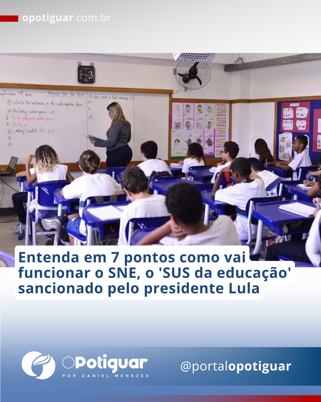 G1 - A lei que institui o Sistema Nacional de Educação (SNE) foi sancionada pelo presidente Luiz Inácio Lula da Silva na sexta-feira (31), e publicada no Diário Oficial da União desta segunda-feira (3).