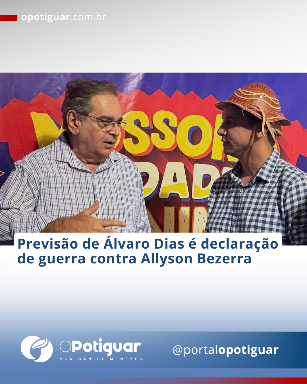 Álvaro Dias previu que Allyson Bezerra, se candidato ao governo em 2026, não irá para o segundo turno. Ora, a última que Dias falou algo parecido, ele usou toda a força da máquina para retirar Carlos Eduardo do segundo turno em Natal em 2024. Alinhado a Rogério Marinho, que é pré-candidato ao governo do RN ano que vem, o ex-prefeito de Natal deixou claro o que quer para o prefeito de Mossoró.