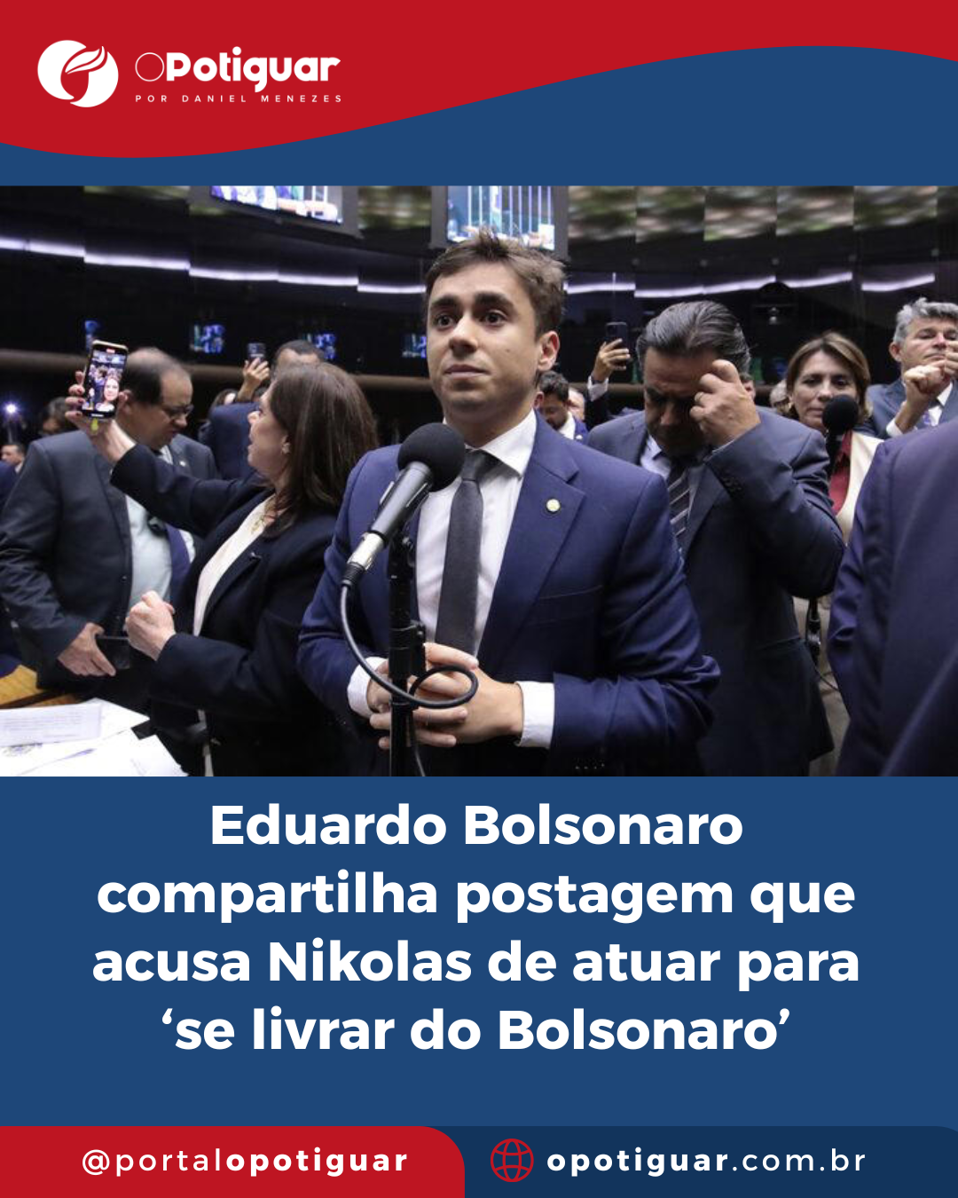 Eduardo Bolsonaro compartilha postagem que acusa Nikolas de atuar para ‘se livrar do Bolsonaro’