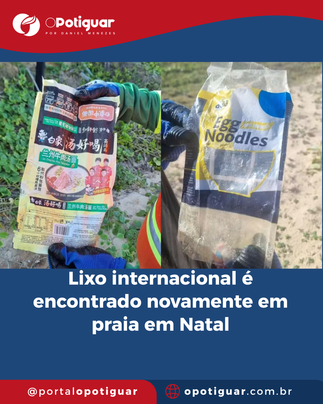 👉 No início deste ano, além de também ter sido encontrado na Via Costeira, o lixo internacional apareceu em pelo menos outras três praias do litoral do estado: Muriú (em Ceará-Mirim), Cabo de São Roque (Maxaranguape) e Búzios (Nísia Floresta).