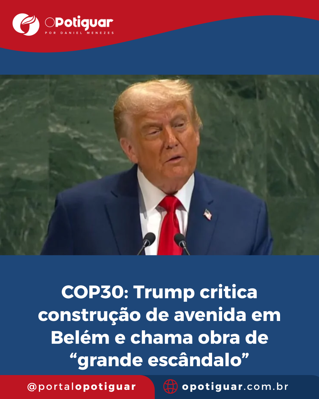 Trump criticou a Avenida da Liberdade, em Belém, e associou a obra à COP30, o que foi negado por governos estadual e federal - Foto: Reprodução