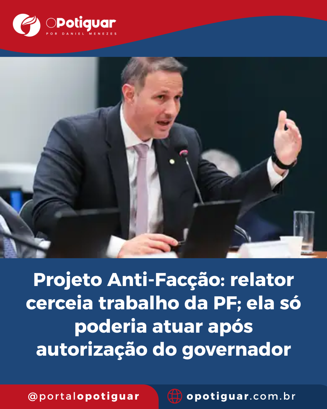O parecer do deputado Guilherme Derrite (PP-SP) que modifica o projeto de lei (PL) Antifacção, originalmente enviado pelo poder Executivo, condiciona as investigações conjuntas da Polícia Federal (PF) com forças estaduais sobre crimes relacionados a facções criminosas a um pedido formal do governador.