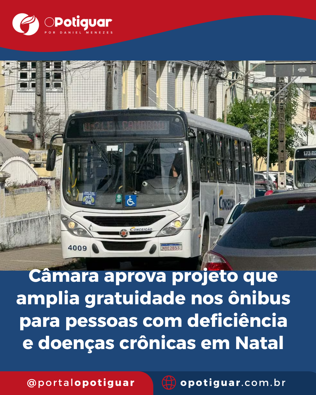 G1 - A Câmara Municipal de Natal aprovou nesta quarta-feira (12) um projeto de lei que ampliou a gratuidade no transporte público para pessoas com deficiências e doenças crônicas que realizam tratamento em clínicas e instituições privadas conveniadas.