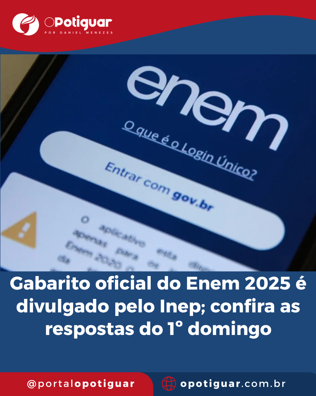 Gabarito oficial do Enem 2025 é divulgado pelo Inep; confira as respostas do 1º domingo