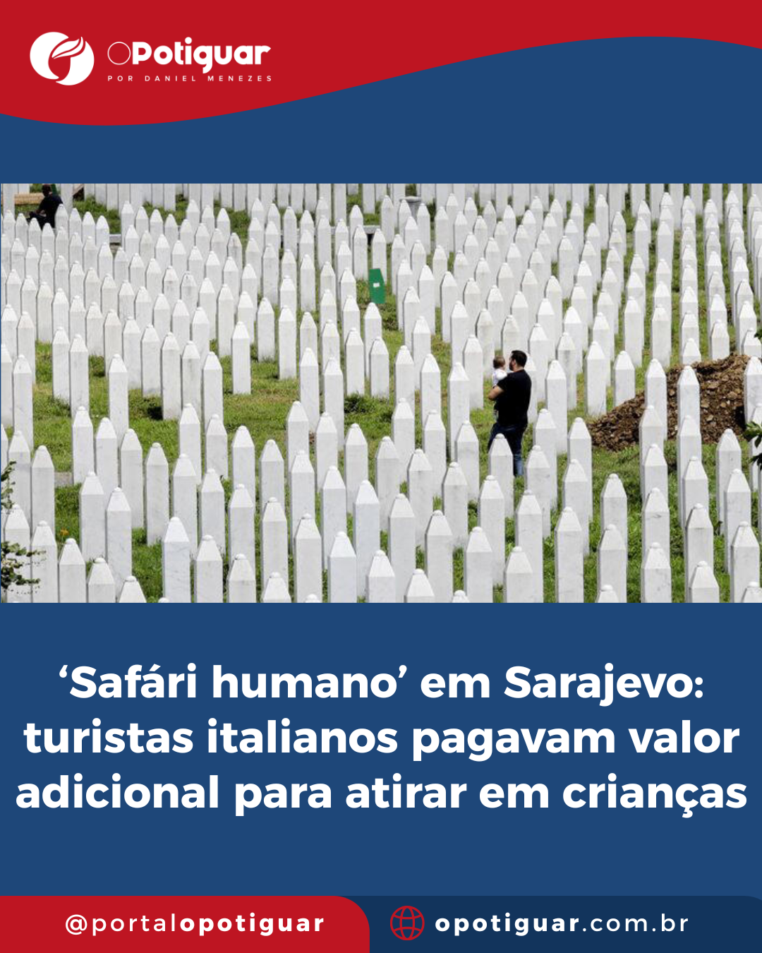 Estadão - Turistas italianos suspeitos de participar de “safáris humanos” pagavam valor adicional para atirar e matar crianças. Os crimes ocorreram em meio ao cerco de Sarajevo, um dos capítulos mais sangrentos da Guerra da Bósnia, entre 1992 e 1995, período da dissolução da antiga Iugoslávia (atual Sérvia).